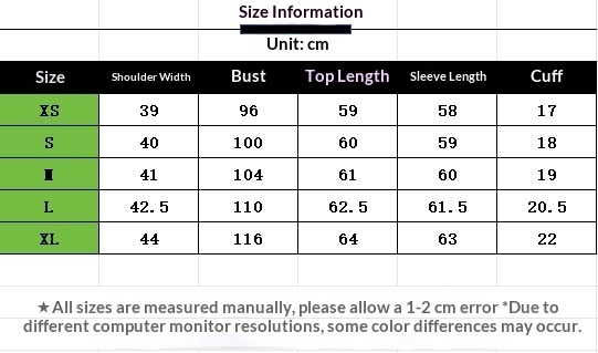 Sizes: XS, S, M, L, XL