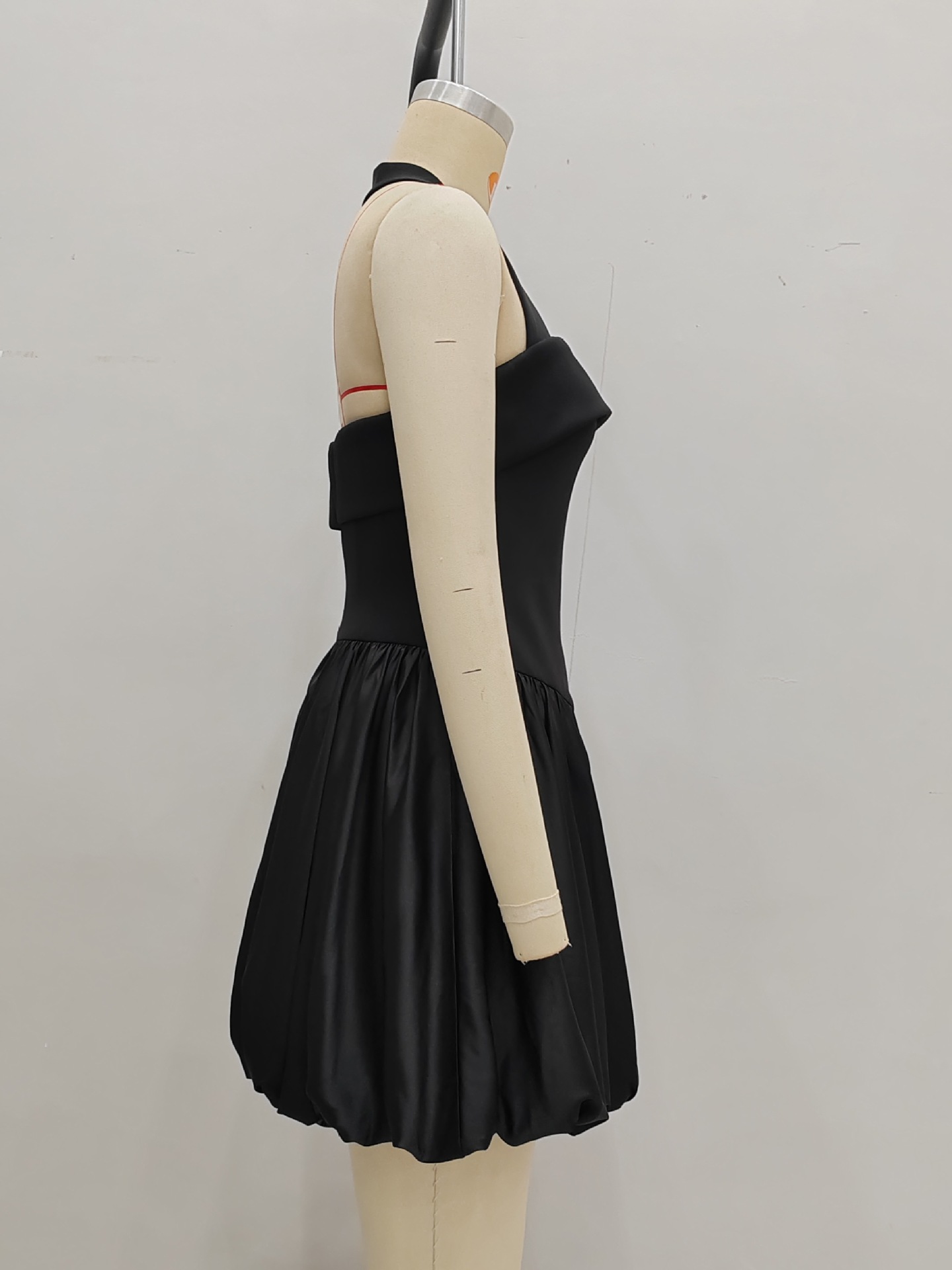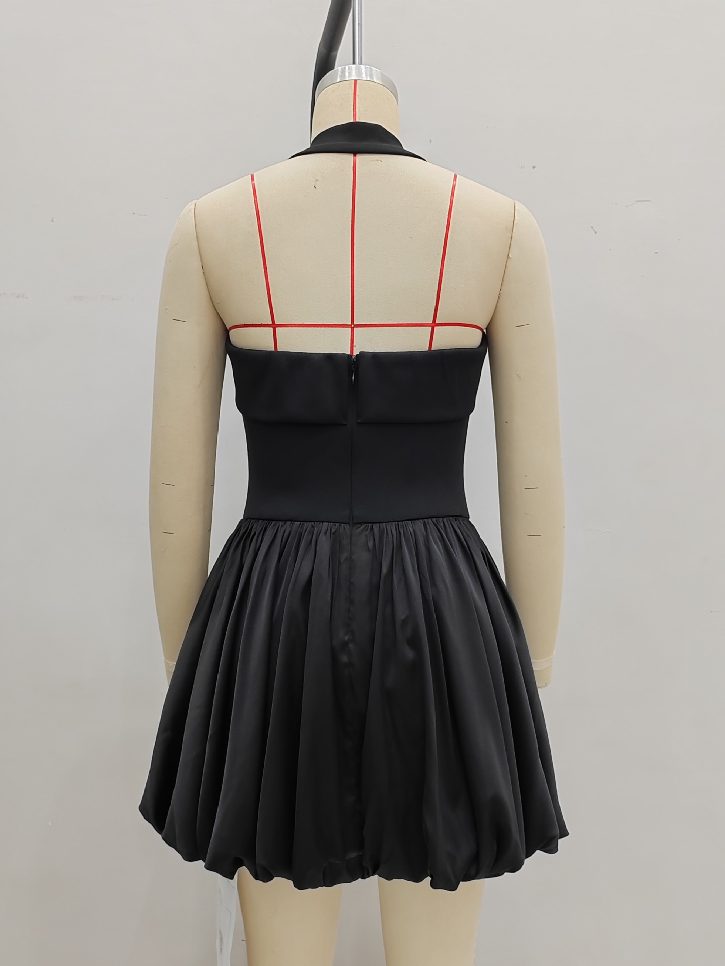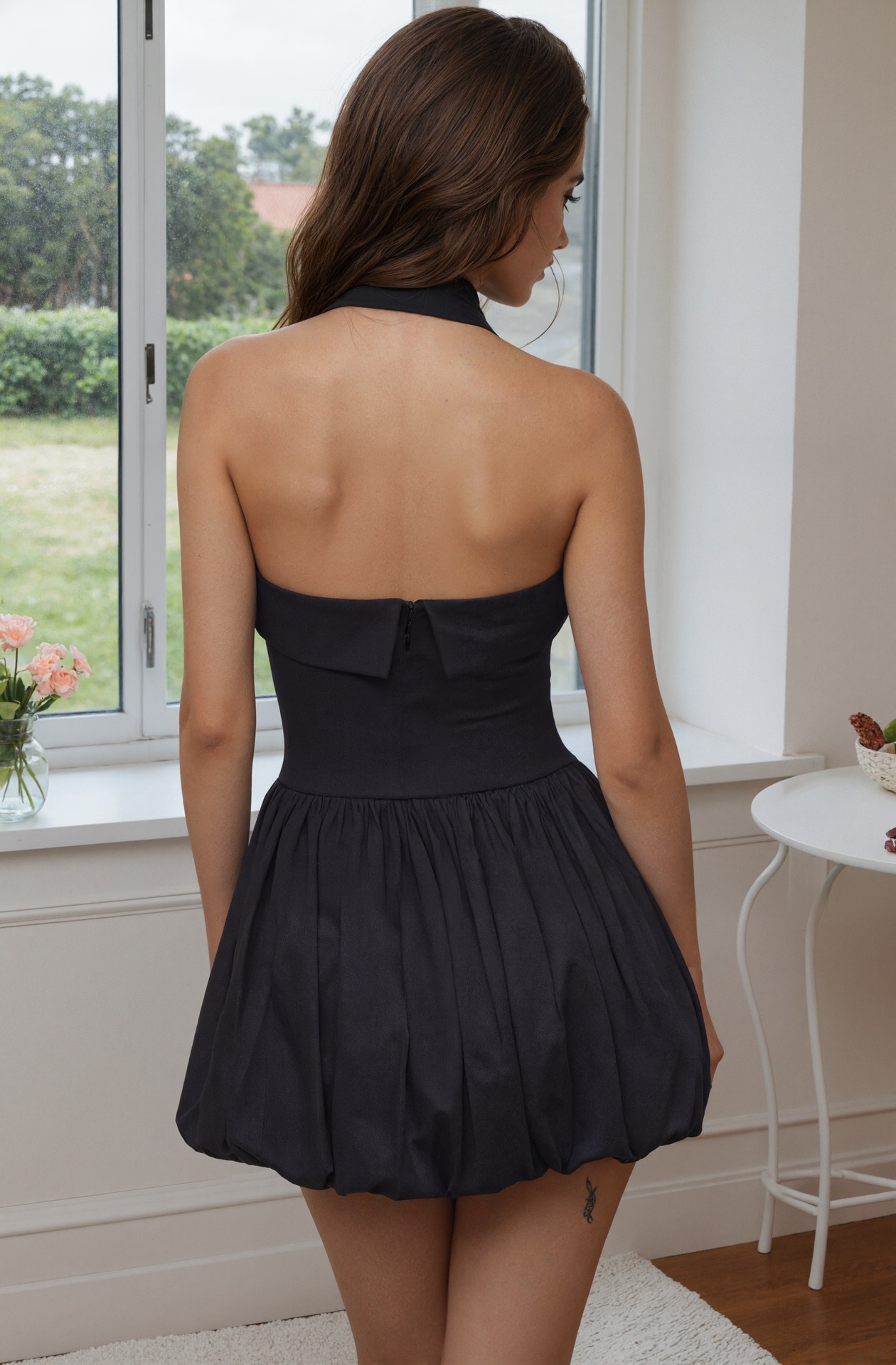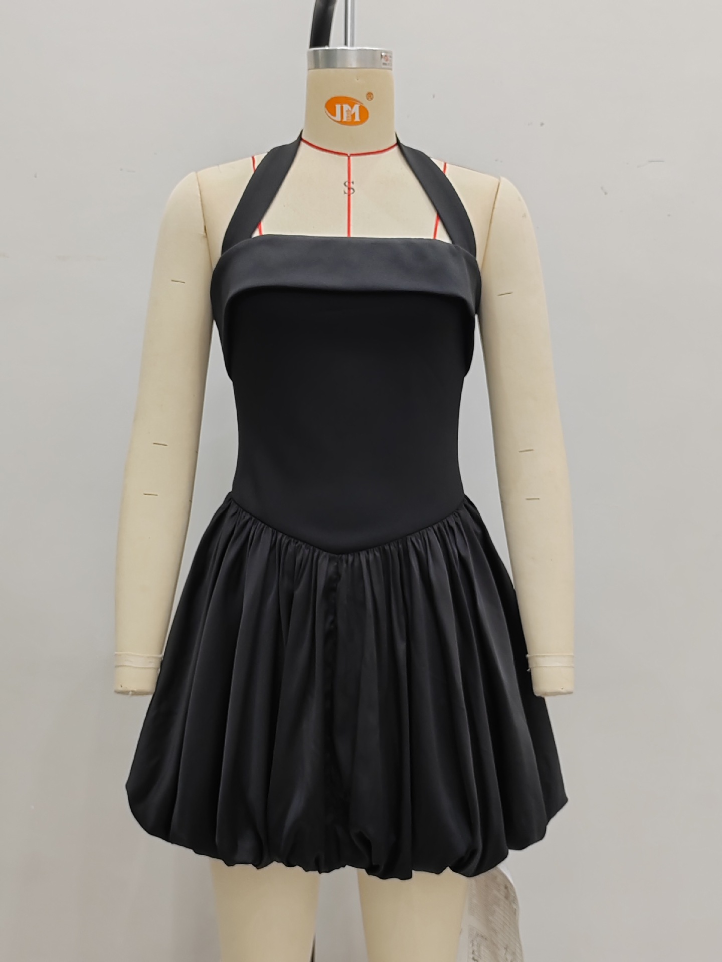 Solid-Color Bud-Shape Halterneck Mini Dress